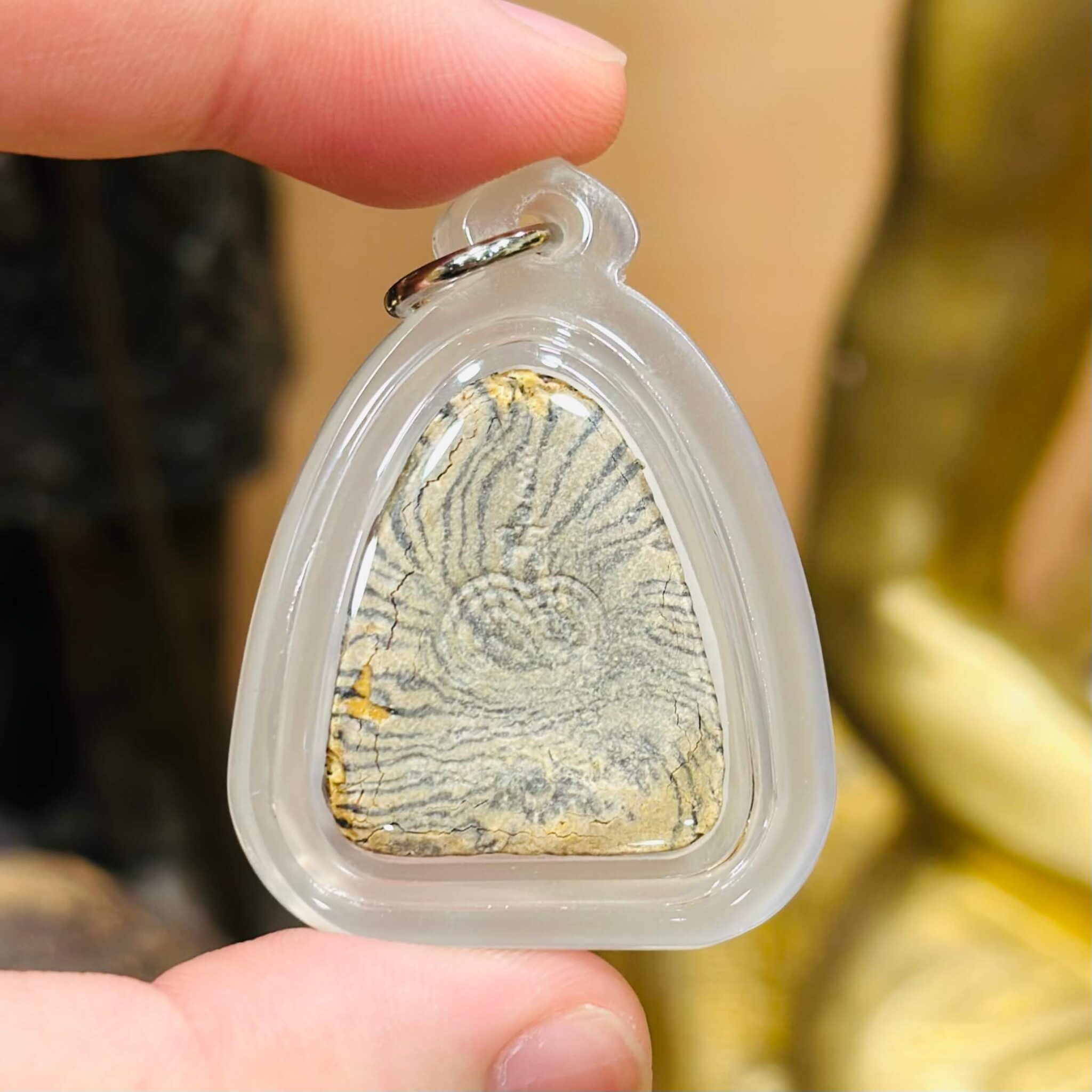 👑 此尊【虎纹必达】为第一期原始版本,制作于佛历 2513 年,年代久远,来源清晰。圣物制作过程中,参入花粉,香灰,庙土,经灰等多种传统圣料,由龙婆培师傅亲自加持完成。