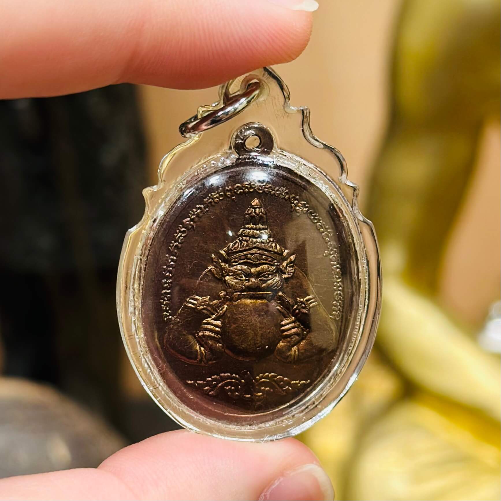 🧘 龙婆努音为泰国近代具实力与口碑的高僧之一,此尊【自身法相】象征师傅亲自护佑随身,背面加持拉胡天神,形成「正护 + 强挡」的双重守护结构。